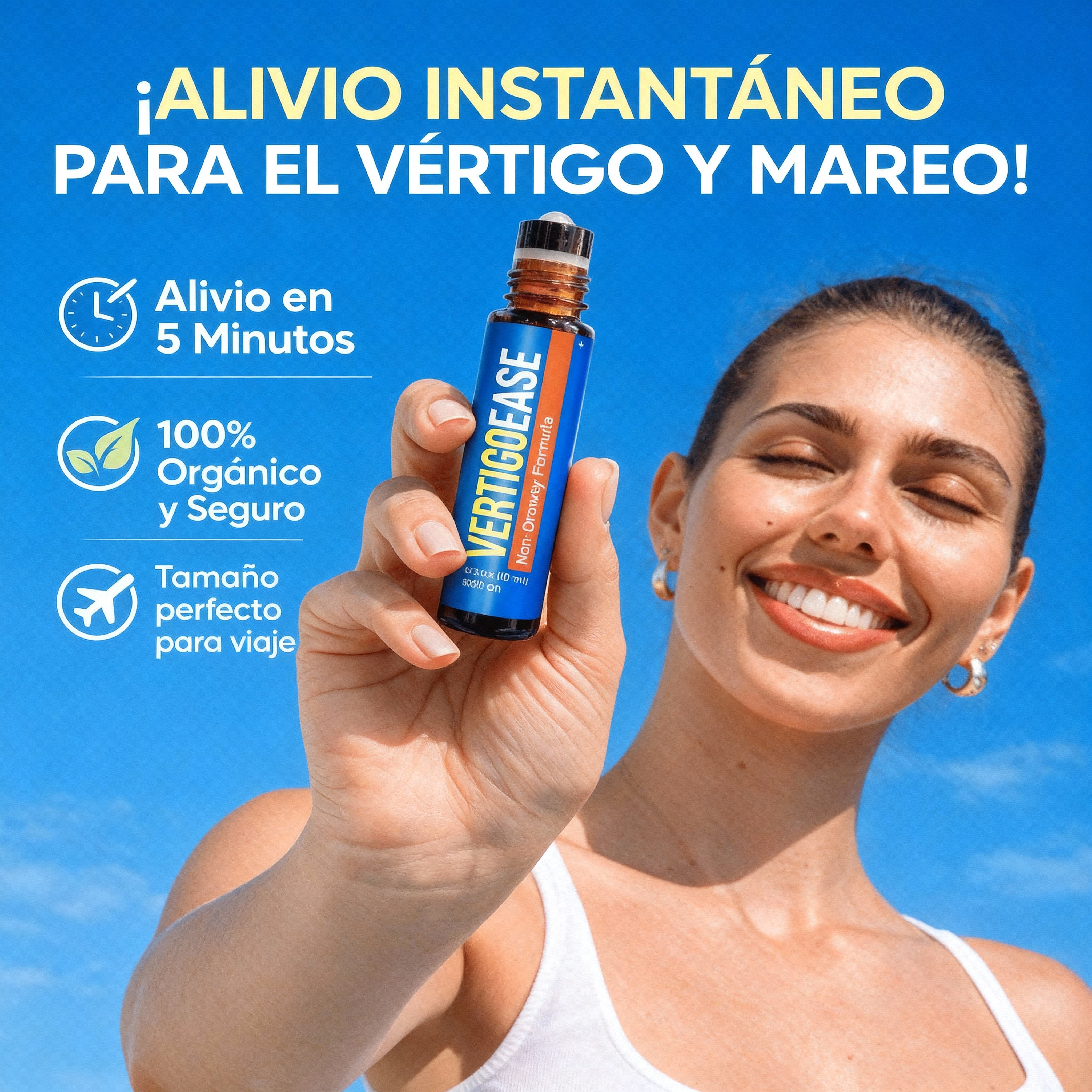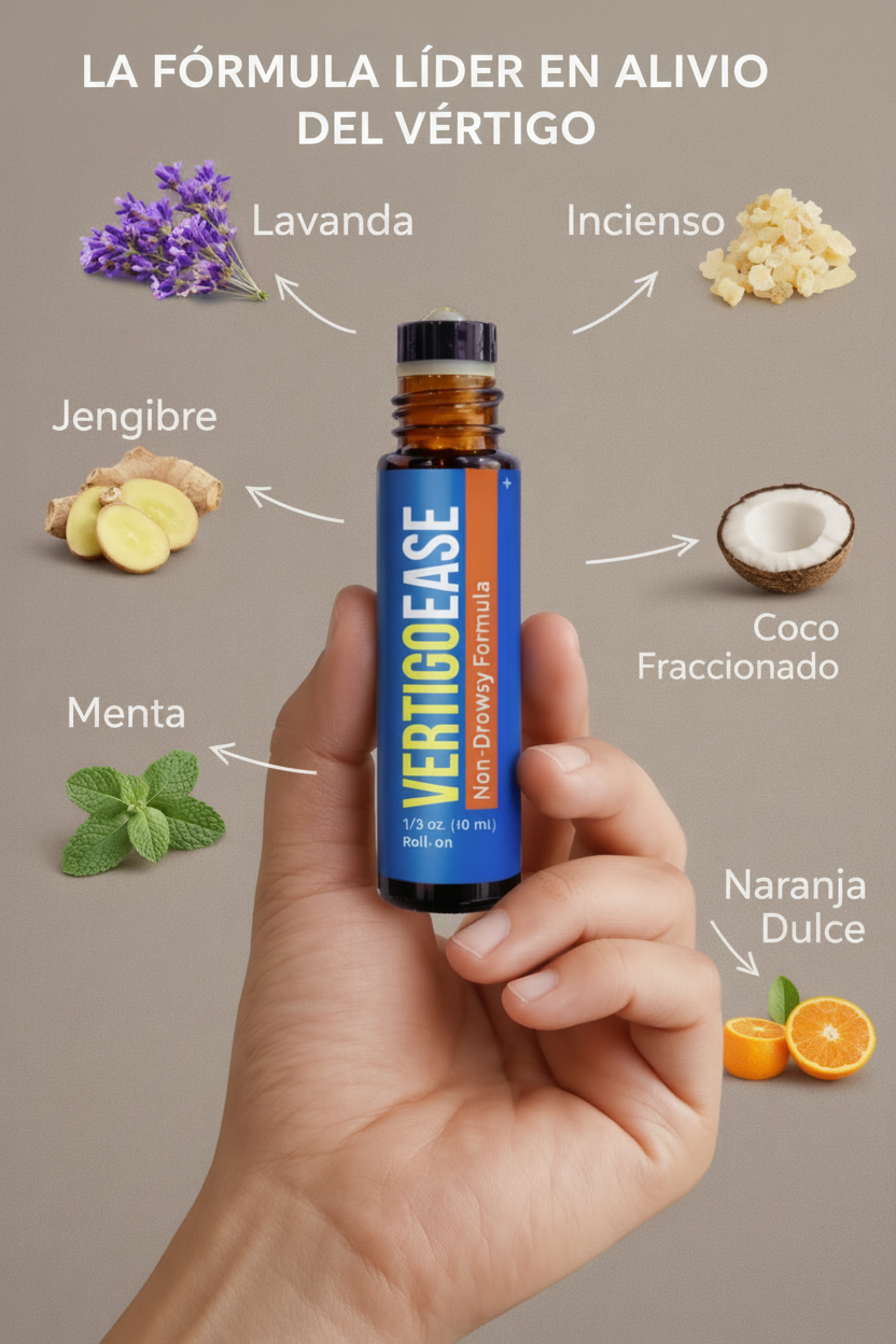 La ciencia de la naturaleza a tu servicio. Roll-on de 10ml con 6 aceites puros y absorción transdérmica. Actúa cerca del nervio auditivo para frenar el vértigo rápido. Alivio en 5 min, sin somnolencia y 100% natural.